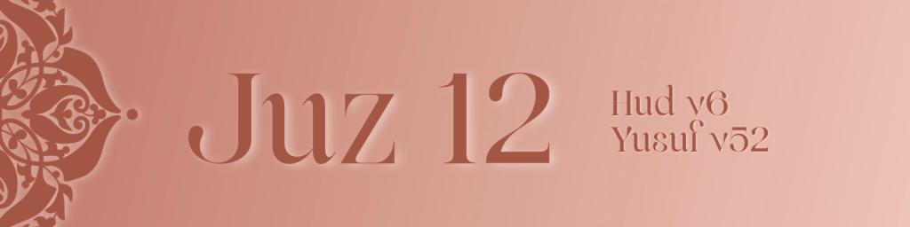 Juz 12 moves from the warnings of Surah Hud to the intimate story of Surah Yusuf. It recalls the fate of past nations, teaching that arrogance leads to ruin while patience anchors the believer through hardship and ease.