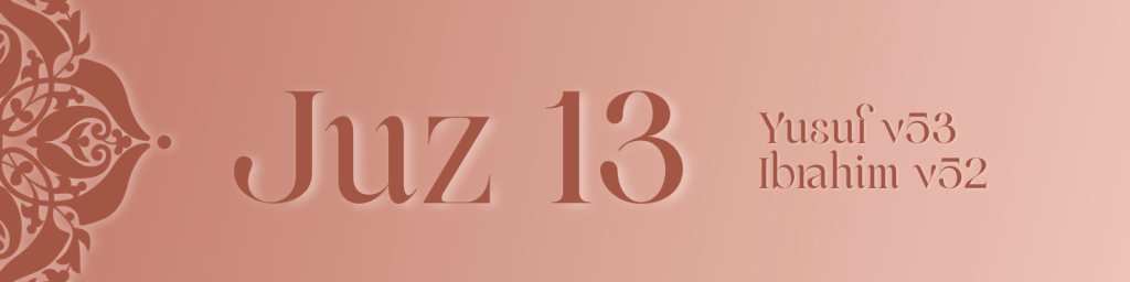 Juz 13 completes the story of Yusuf, showing how patience and trust in Allah led from hardship to reunion and honour. His life reflects the fulfilment of divine promise and the reward of integrity.