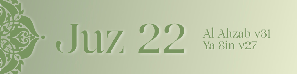 Juz 22 moves through Surah Al Ahzab, Surah Saba, Surah Fatir and Surah Ya Sin, combining legal guidance with spiritual reflection. It clarifies important social principles, including the preservation of true lineage, the conduct of the Prophet’s household and the obligations surrounding modesty, including women’s dress.