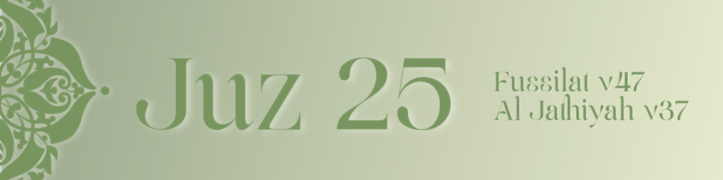 Juz 25 moves through the Hawamim surahs, including Surah Fussilat, Surah Ash Shura, Surah Ad Dukhan and Surah Al Jathiyah. It reflects on the condition of the human heart, showing how people often turn to Allah in hardship but fall into arrogance when ease returns.